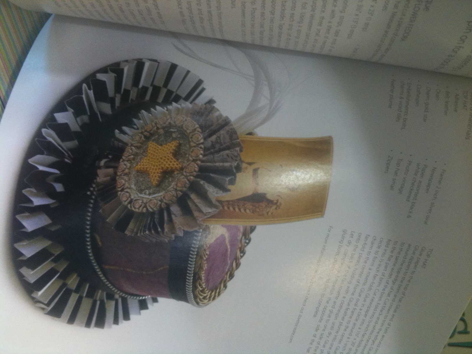 Steampunk is always one of my favorite things to do as far as DIY fashion, jewelry, or collage. I made this steampunk hat to coordinate with a paper dress for a tradeshow last year. The Editor from the magazine, Altered Couture picked it up for this issue.